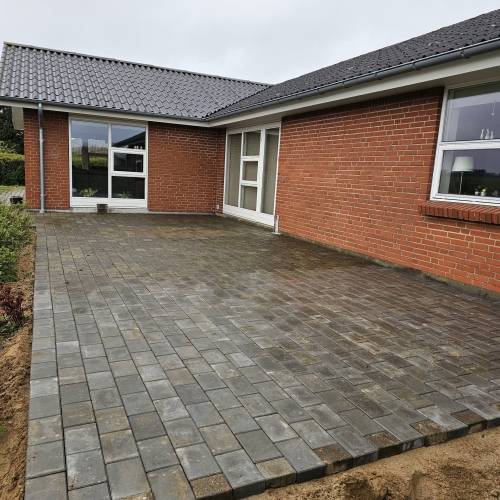 - Indkørsler – professionel brolægning med sten eller fliser, der kombinerer styrke og et flot udtryk.