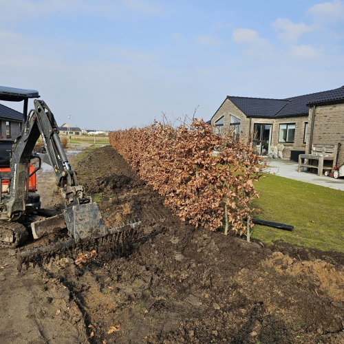 - Anlægsprojekter – anlæg af græsplæner, støttemure, gangstier og plantning af færdighæk. Vi tilbyder også etablering af hegn og udfører brolægning.